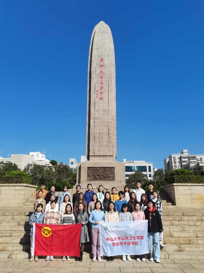 接着师生们前往深圳革命烈士陵园参观。在革命烈士纪念碑前,师生们向烈士默哀,三鞠躬,表达对烈士的深切哀思和崇高敬意。在曾生校友墓碑旁,王燕芳副书记向学生骨干们介绍曾生校友的光荣事迹。曾生校友在抗日战争时期任东江纵队司令员,为发展华南抗日游击战争和中国抗日战争的胜利做出了重大贡献,让师生们牢记中大人的家国情怀和时代使命,“革命不忘读书,读书不忘革命”的中大人精神。