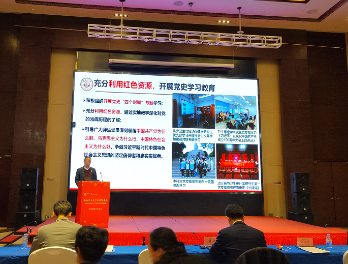 党委书记范瑞泉指出学院党委严格按照:“学史明理、学史增信、学史崇德、学史力行”和“学党史、悟思想、办实事、开新局”的目标要开展党史学习教育。结合学院实际,创新方式方法,切实增强党史学习教育的针对性和实效性。立足学院师生所急所盼,认真开展“我为群众办实事”实践活动,努力为学院师生做好事、办实事、解难事。坚持围绕中心、服务大局,把党史学习教育激发出来的热情转化为攻坚克难、创建高水平公共卫生的成效。