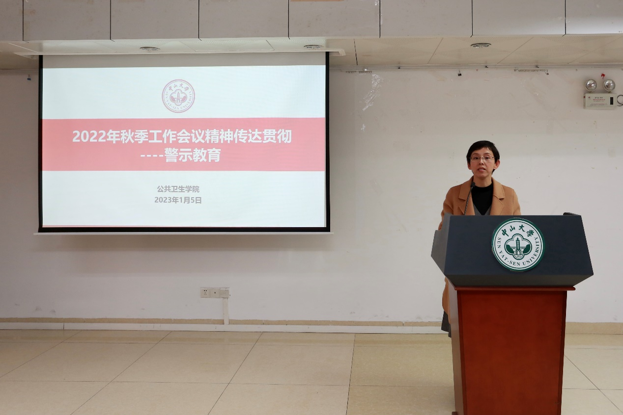夏敏院长首先传达了高松校长《以学生成长为中心,以通专融合为路径,全面提高人才自主培养质量》的秋季工作会议报告精神。高松校长在报告中提出,要学深悟透党的二十大精神的主旨要义、丰富内涵和实践要求,切实推动党的二十大精神落细落实到学校工作各方面全过程。激发学校发展活力和动力,加快建设中国特色世界一流大学;推行“加强基础、促进交叉、尊重选择、卓越教学”的十六字人才培养理念。夏院长强调,我们要深入学习党的二十大精神和学校秋季工作会议精神,牢牢抓住高水平51色情 建设与发展机会,加快构建公共卫生人才培养新范式,开拓公共卫生师资发展新途径,建设公共卫生科学研究新高地。