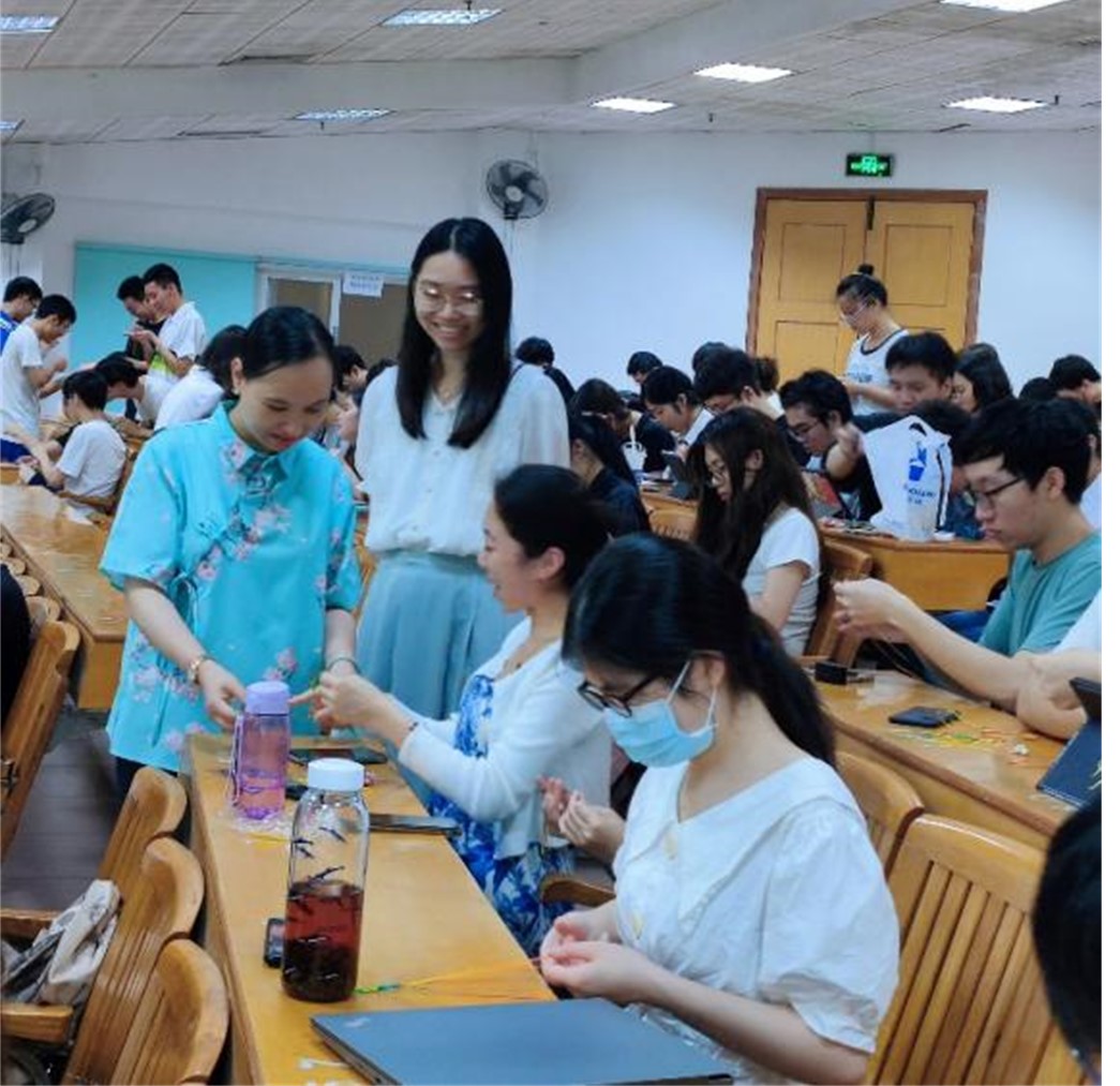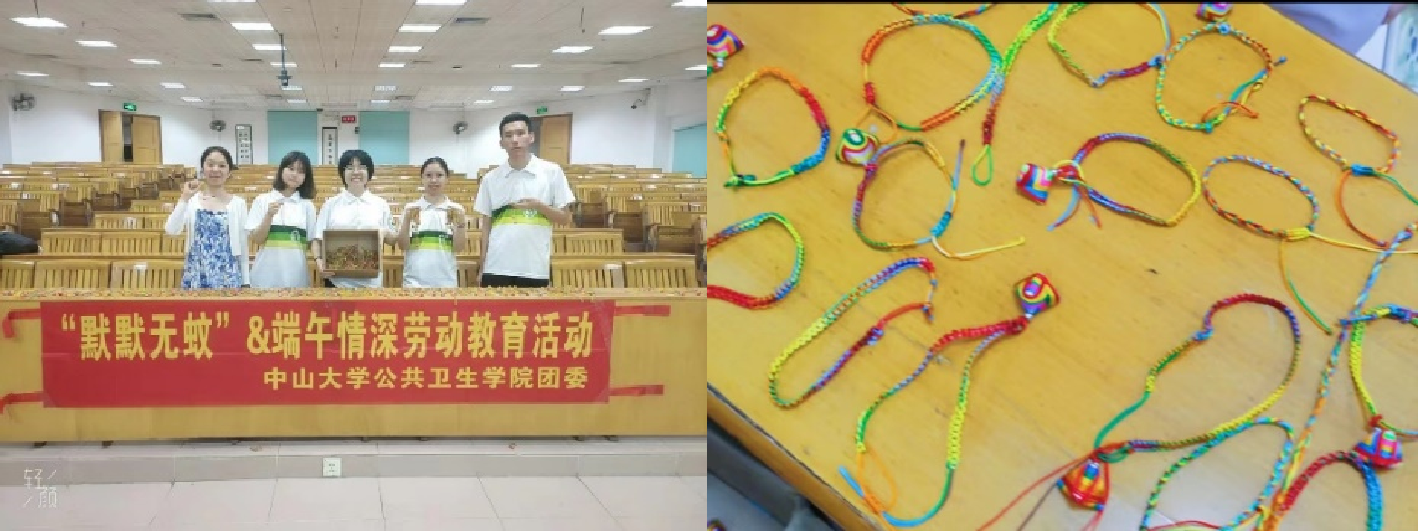 发挥专业优势,组织开展了“默默无蚊,端午情深”劳动教育活动,将驱蚊虫、庆端午与劳动教育相结合,在南、北两个校园以不同的形式展开:北校园21级和20级学生编织五彩绳,南校园22级学生缝制驱蚊包。最后将作品赠予院内老师,共同庆祝端午。