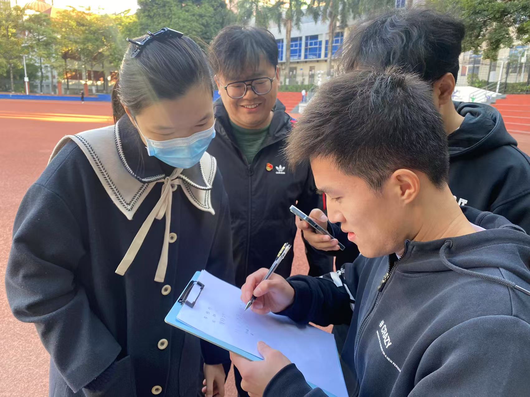 趣味运动会包括“4×200米数据采集接力赛”、“精准统计投掷赛”、“样本抽取赛:找出‘隐藏真相’”等三项融入统计学知识的趣味活动。活动伊始,师生们随机分组,赛场随即热闹起来。