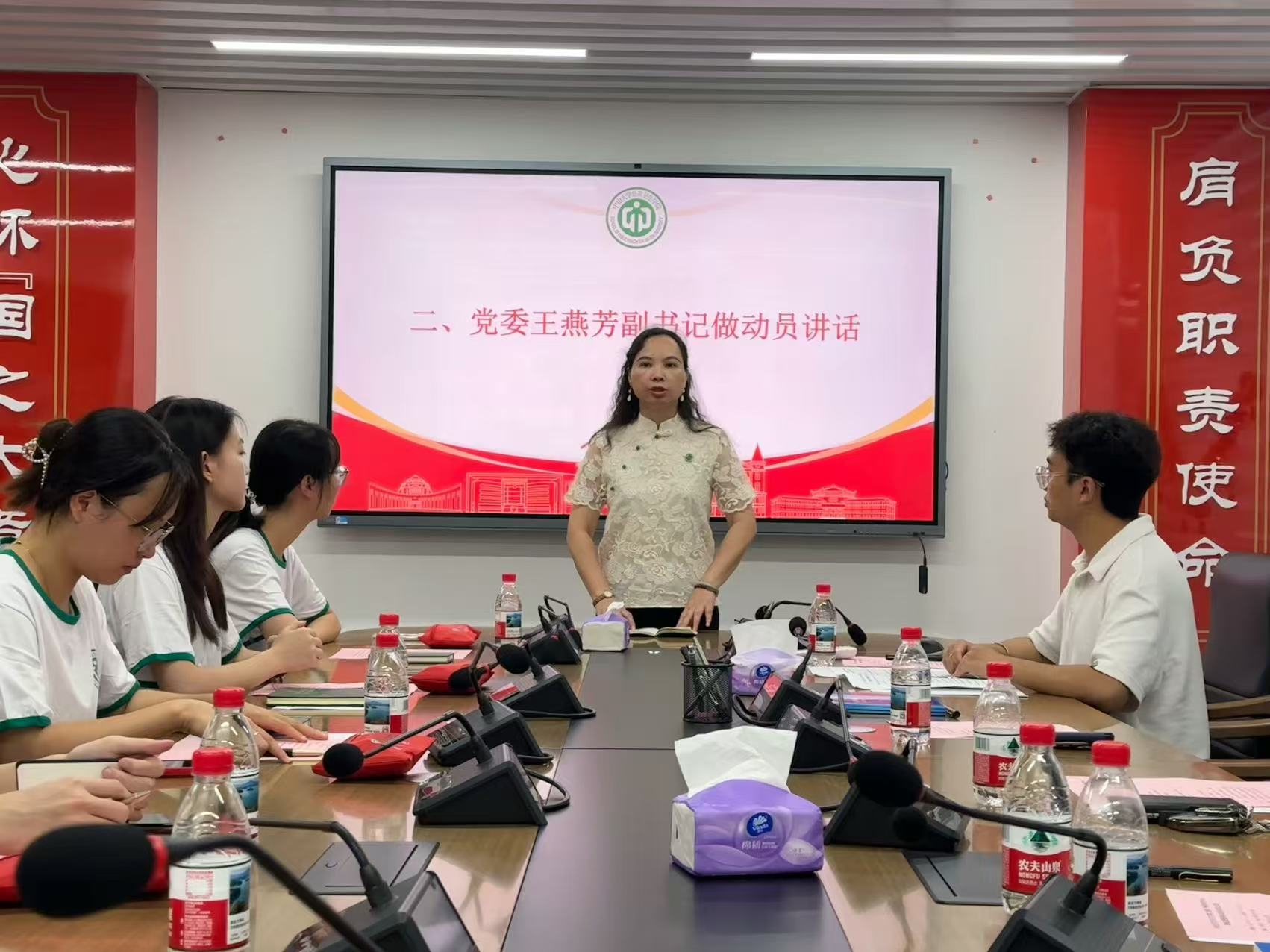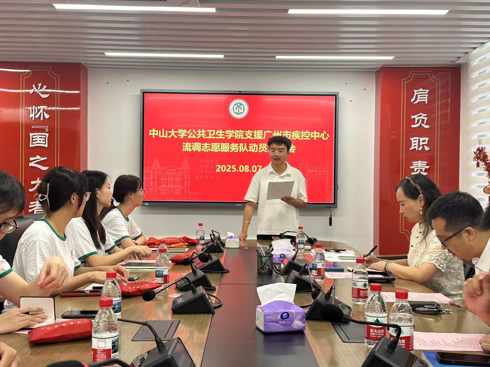 疫情就是命令,时间就是生命!学院在收到请求后,立即快速响应,面向全体研究生发布志愿者招募令。同学们踊跃报名,在经过严格选拔后,组成了由博士生邱慧玲担任队长、王钰等4名硕士生为队员的流调志愿服务队。2025年8月7日上午,全部准备工作就绪后,学院召开“支援广州市疾控中心流调志愿服务队动员培训会”。学院党委副书记王燕芳、院长助理杨博逸教授、学院团委副书记杜志成副教授、党政专职辅导员李永强及全体志愿者参加了会议,会议由李永强老师主持。会议围绕支援广州市疾控中心开展基孔肯雅热疾病防控流调志愿服务工作展开,旨在统筹部署志愿服务任务,强化专业技能培训,凝聚师生抗疫合力。