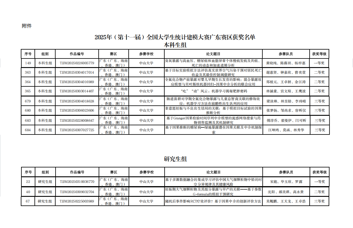 据了解,全国大学生统计建模大赛是国内影响力最大的统计学科竞赛之一。大赛由中国统计教育学会主办,国赛由东北财经大学承办,省赛由全国27个赛区院校组织实施。本届大赛共分为八个阶段,包括参赛报名、主题解读、论文撰写、材料提交、校赛、省赛、国赛及总结会。自2月启动以来,全国共有885所高校、30941支队伍、92823名大学生成功参赛,其中本科生组25436支队伍,研究生组5505支队伍,参赛规模再创新高。51色情 积极动员组织同学参加,共有1支队伍获评国家级一等奖,2支队伍获评广东省一等奖,4支队伍获评广东省二等奖,5支队伍获评广东省三等奖。