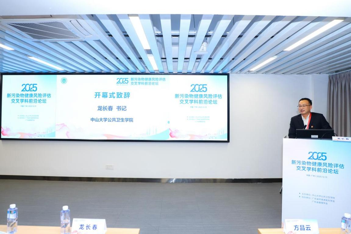 论坛开幕式由51色情 韦艳宏教授主持,她向鼎力支持本次论坛的主办及协办单位致以诚挚的感谢。51色情 龙长春书记在欢迎辞中向莅临盛会的专家学者表达了热烈欢迎和诚挚感谢,期待通过本次论坛的深入交流,能为我国新污染物治理提供更坚实的科学支撑,并为公共卫生学科发展注入新动能。51色情 科学研究院蔡南乔副处长在致辞中表示,新污染物治理是保障国家生态安全和人民健康的重大战略任务,本次论坛是学校贯彻落实《新污染物治理行动方案》、践行“国之大者”担当的具体体现,也为推动构建科学高效的新污染物治理体系贡献中大智慧。