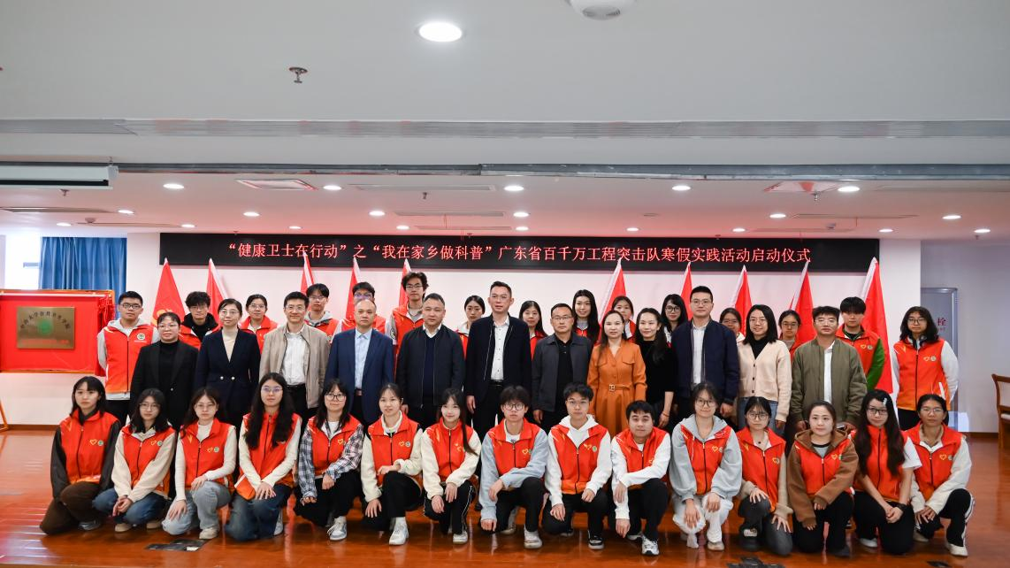 1月15日,学院“健康卫士在行动”之“我在家乡做科普”广东省百千万工程突击队寒假实践活动启动仪式在肇庆市第二人民医院(肇庆市妇幼保健院)举行。肇庆市卫生健康局副局长刘振宁、肇庆市第二人民医院党委书记隋欢四等领导与学院师生代表参与此活动。学院党委书记龙长春在动员讲话中指出,健康科普是推动卫生健康事业从“以治病为中心”向“以人民健康为中心”转变的关键抓手。他寄语同学们珍惜深入基层的实践机会,将专业知识转化为服务人民健康的实际行动,真正了解基层需求,在服务中锤炼本领。